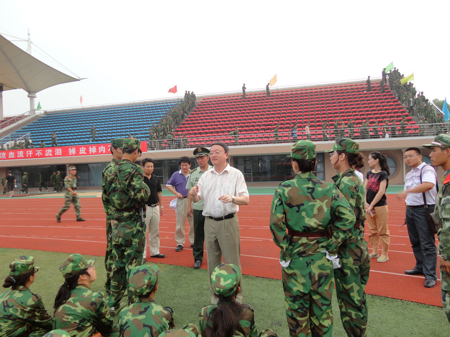 9月8日下午五点,在军训阅兵仪式预演结束后,孙培雷副校长在学生处处长王明复老师、军训旅长冯相海的陪同下来到三营女子配枪方阵,亲自动员并指导工作。