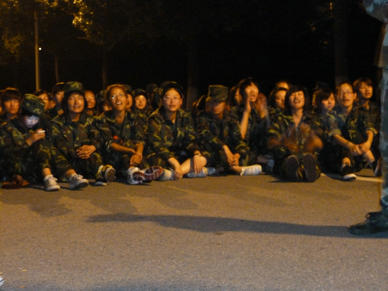 领导们的鼓励和精彩的歌曲使得会场上掌声和叫好声不断,现场气氛非常融洽。精彩的节目过后,在三营同学们刚劲有力的《团结就是力量》的歌声中,联谊会进入了拉歌环节。三营的同学们忘却了训练的疲劳,在军训教官的带领下引吭高歌,以饱满的热情、嘹亮的歌声欢庆军训成果。