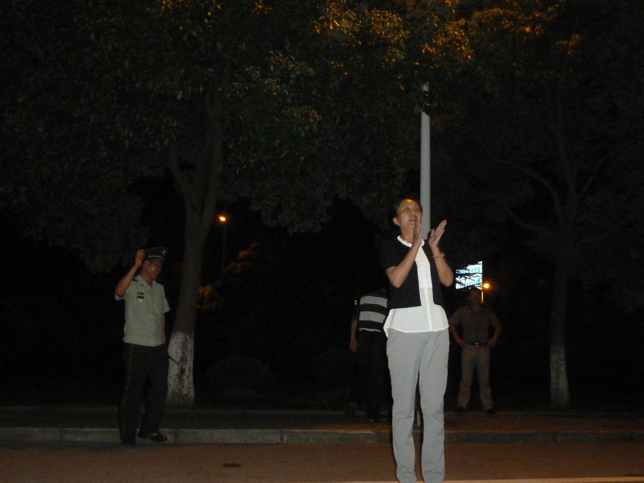 军训旅旅长冯相海首先充分肯定了同学们在军训期间所表现出来的执着、坚持、努力的精神,感谢教官们的辛勤付出,并预祝三营在正式阅兵仪式上取得好成绩。随后冯相海旅长演唱了一首《康定情歌》,受到同学们的热烈欢迎。军训旅政委、学生处处长王明复老师也为献上一首深情并茂的《小白杨》,管理学院党委副书记虞蓉老师以一曲《青藏高原》的歌曲让联谊会推向了高潮。