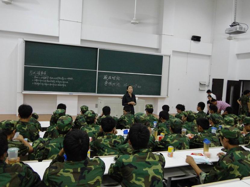 为鼓励与支持军训中的同学们,9月7日在管院党委副书记虞老师带领下,管理学院组织新生辅导员们在教学楼F120慰问参训的新生。