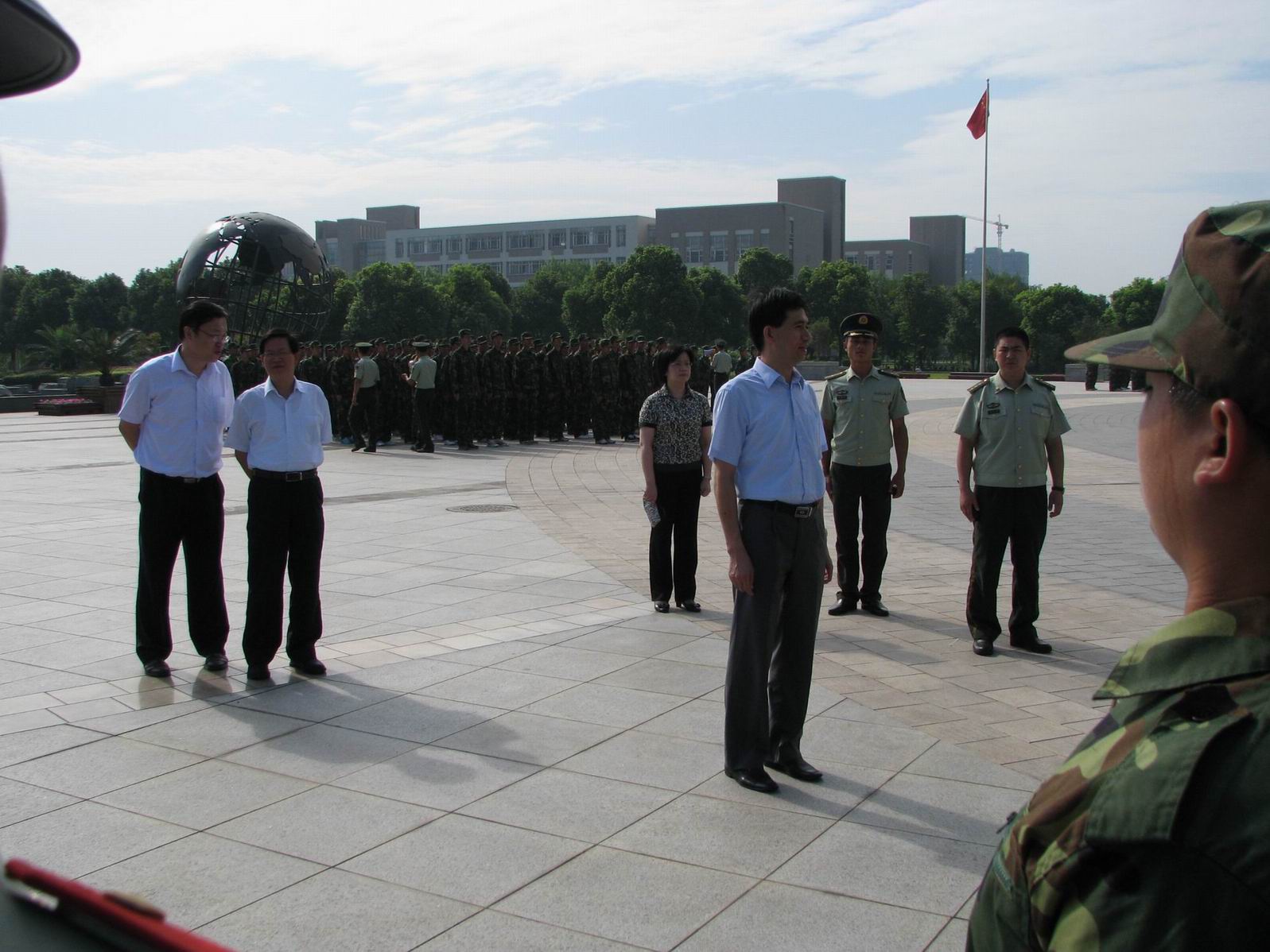 9月6日上午,校党委书记滕建勇、校党委副书记褚劲风、田信灿等校领导亲临二营检阅军训成果,并对二营新兵的军训情况进行了详细的了解。新生步伐整齐,气宇轩昂,以饱满的精神状态为首长们汇报,校领导对二营的军训情况表示满意并鼓励同学们坚持到底,再创辉煌。