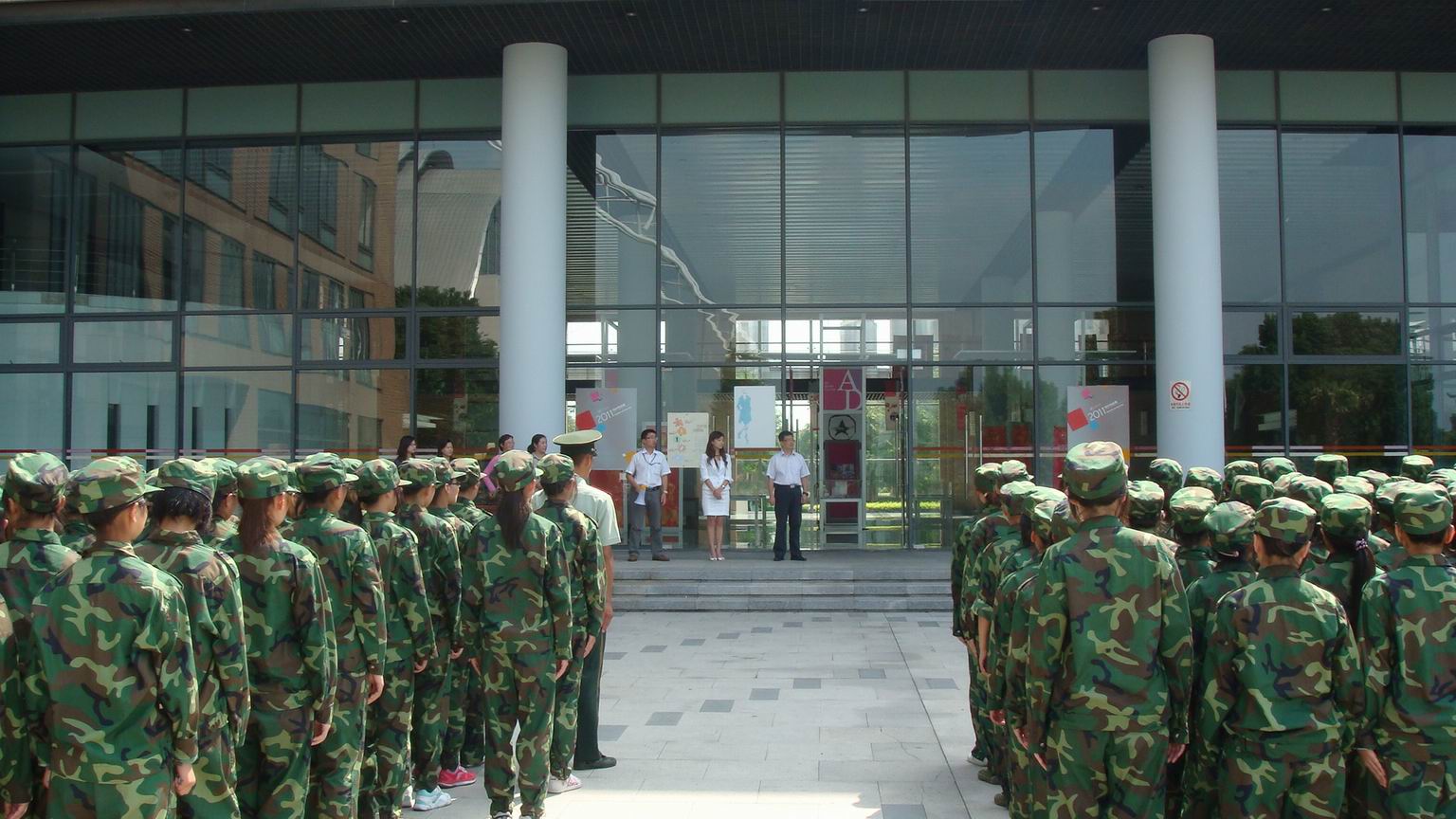 在学院领导到来之前,同学们便早已排列整齐,以饱满的精神状态迎接学院领导的检阅。首先,在九营营长的指挥下,男生方队向院领导展示了这几天的训练成果,接着,胡守忠院长代表学院肯定了学生们的军训成果,并感谢教官们的努力付出,同时希望同学们做好开学的各项准备工作,随后,党总支袁蓉书记做了最后汇报演出的动员,希望同学们保持高昂的士气,在9月9日的汇演中交出一份满意的答卷,同时送上了中秋节的祝福。