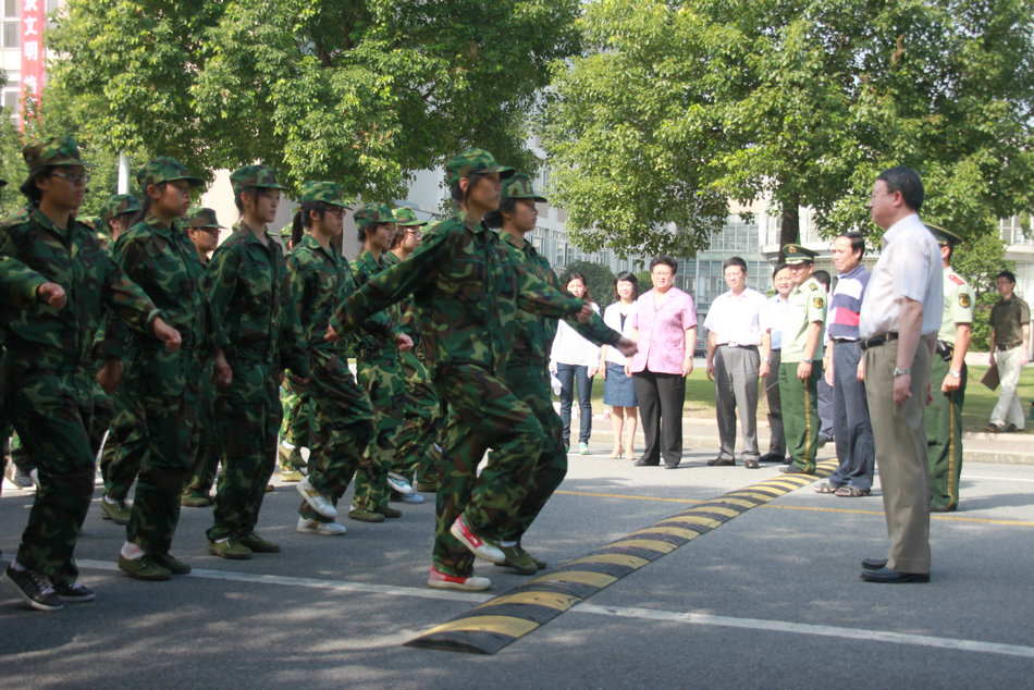 9月6日上午8:30,校长汪泓、副校长孙培雷、副校长程维明、军训旅政委王明复、军训旅副旅长汪洪等一行人对八营进行了视察,详细了解了新生训练的情况。