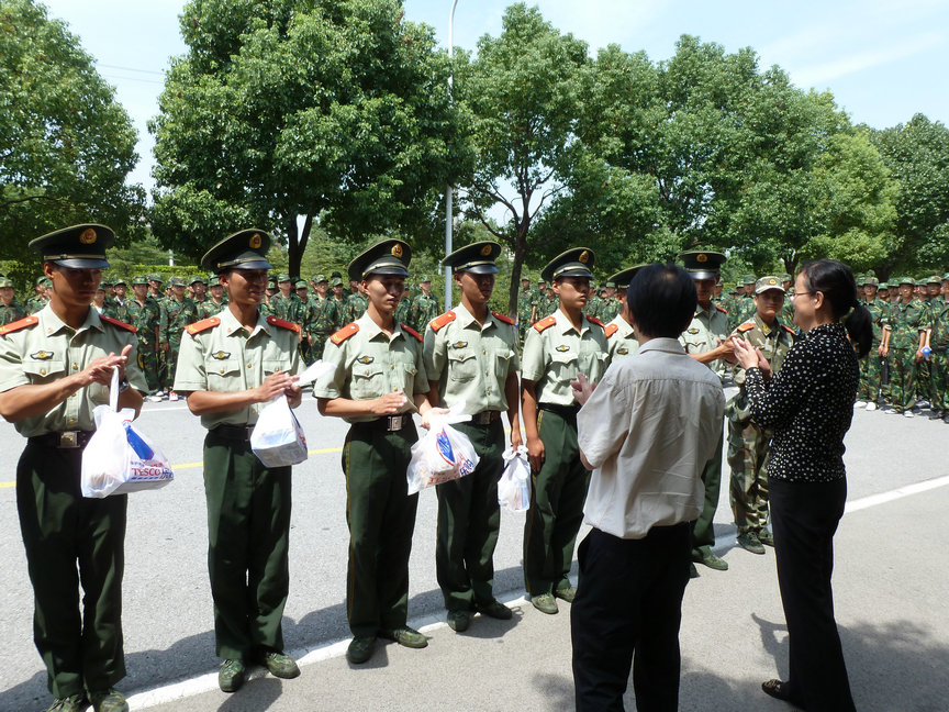 9月6日中午十一点,管理学院常务副院长吴忠老师、党委书记吴清老师、副院长邱羚老师在党委副书记虞蓉老师的陪同下来到三营训练场地,探望了负责新生军训活动的三营全体教官及学生,藉此表达对教官们由衷的谢意。