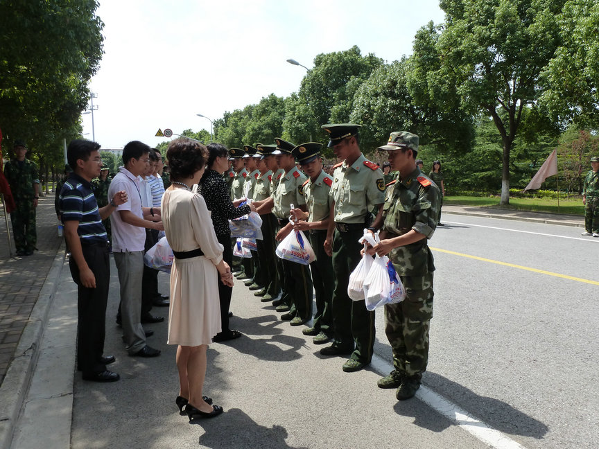 吴忠院长首先向艰苦训练的军训同学们表示了慰问,希望新生在军训过程中继续发扬吃苦耐劳的精神,保持良好的精神状态,再接再厉,以优秀的训练成绩取得军训的圆满成功。学院党委书记吴清也亲切慰问了教官及同学们,并对同学们提出了要求,珍惜大学阶段的最美的人生年华,尤其是宝贵的十天军训,把握这难得的机遇,锻炼自我、超越过去,促进自身更好的成长和发展。