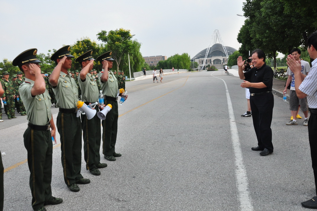 同学们在训练场上凭借响亮的口号声以及整齐的步伐,充分发挥了这几天训练的成果,受到了学校领导们的一致肯定。学校领导对各位同学吃苦耐劳的拼搏精神极为赞扬,并鼓励大家保持这种精神,坚持完成接下来的训练任务。随后马新宇院长与许传宏副院长向同学与教官们分送了慰问品。在九月仍旧炽热的阳光下,一瓶瓶清凉可口的盐汽水无疑给同学们带来了身体和心灵上的双重鼓舞,激励着同学们更为认真的对待接下来训练。