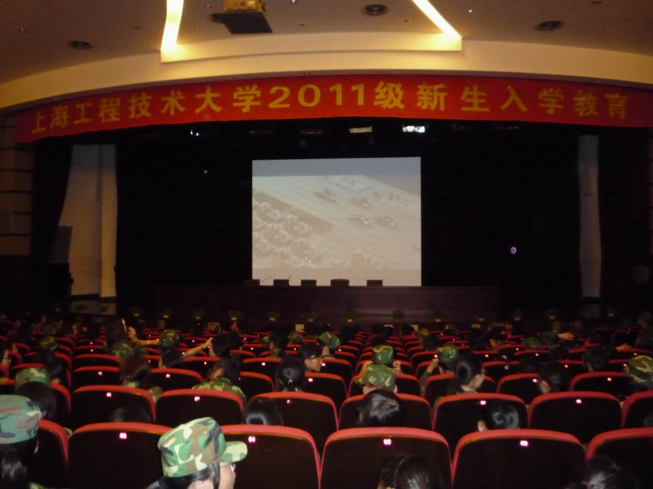 9月4日下午三点半,三营在志宏堂接受了军训理论课程,于大荧幕播放中华人民共和国60周年国庆大阅兵影片。
