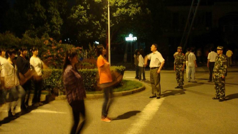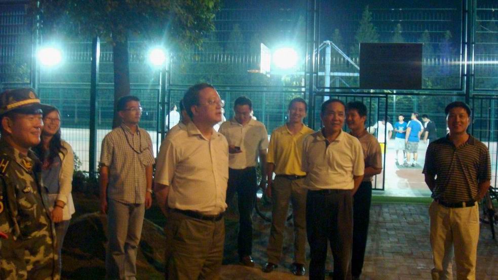 2011年9月3日,军训旅总指挥孙培雷副校长、旅长冯相海、政委王明复等领导晚上来到服装学院11级新生军训场地视察这几天的军训成果。