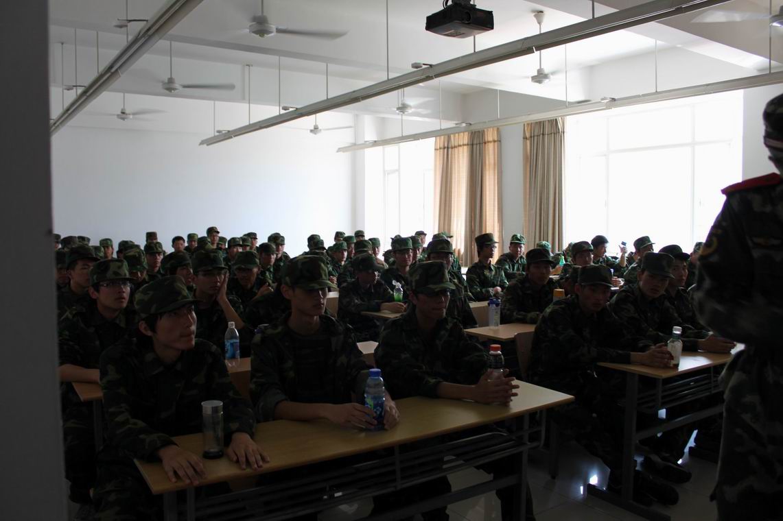 10:00,同学们在教官的带领下,踏着整齐的步伐来到了E楼教室。首先,教官们认真讲解了逃生要领,接着,老师们又对逃生的细节进行了详细的补充。