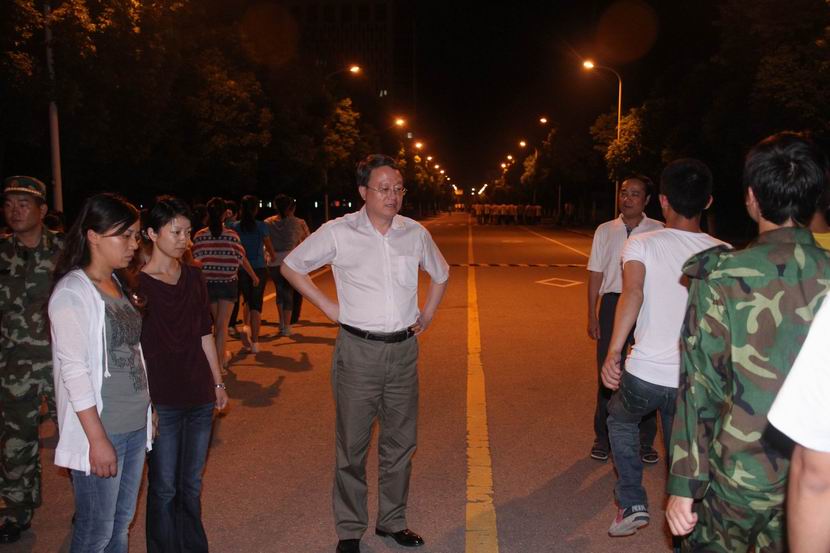 9月3日晚上,副校长孙培雷、旅长冯相海、政委王明复等领导在八营营长杨普华、教导员周慧艳老师等陪同下,视察了八营的训练情况。