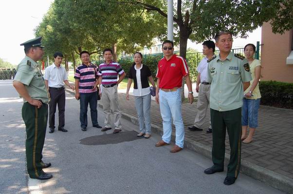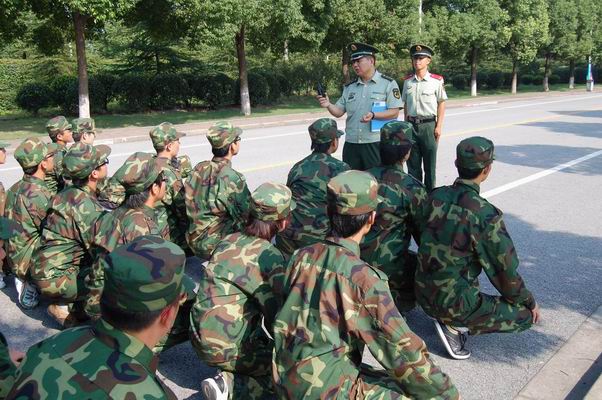 冯相海旅长一行首先慰问了驻训的军训教官,看望了军训中的2009级同学,并检查了军训工作的进展情况。军训旅旅长首先冯相海向大家问好,教官和同学们都报以响亮而整齐的掌声。在观看了学生的队列操练后,冯相海旅长一行又向参与军训的教官咨询军训情况,感谢他们为学校学生军训所付出的辛勤劳动,赞扬了同学们坚持不懈的精神,肯定了2009级军训开展以来所取得的成绩,并针对同学们操练中存在的问题和改善方法进行了详细的讲评,希望教官们在搞好军训的同时注意防暑保重身体,希望同学们发扬不怕苦不怕累的精神,争创优秀连队争做优秀标兵。