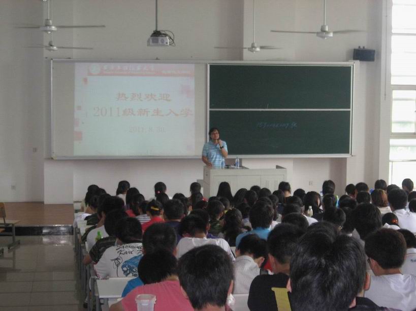 会议由总支副书记熊筱晶老师主持。首先徐院长代表学院对新生的到来表示热烈的欢迎,并介绍了学院的发展过程、专业情况和特色的办学理念,从学习、生活等方面给新生们提出了要求和希望,同学们被院长的殷切的话语深深感染了,全场响起了热烈的掌声。