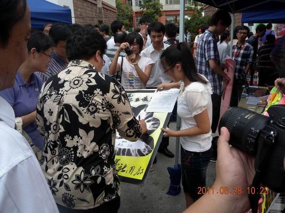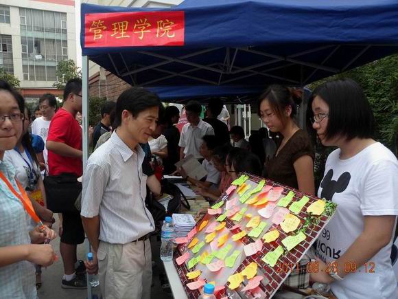 管理学院在迎新现场开展了“梦开始的地方,微笑留给工程大”的新生寄语活动,很多父母把对孩子的寄语和鼓励写在了题板上,并有专门的志愿者为学生和家长在展板前留影。汪泓校长也应邀在题板上签字留念。