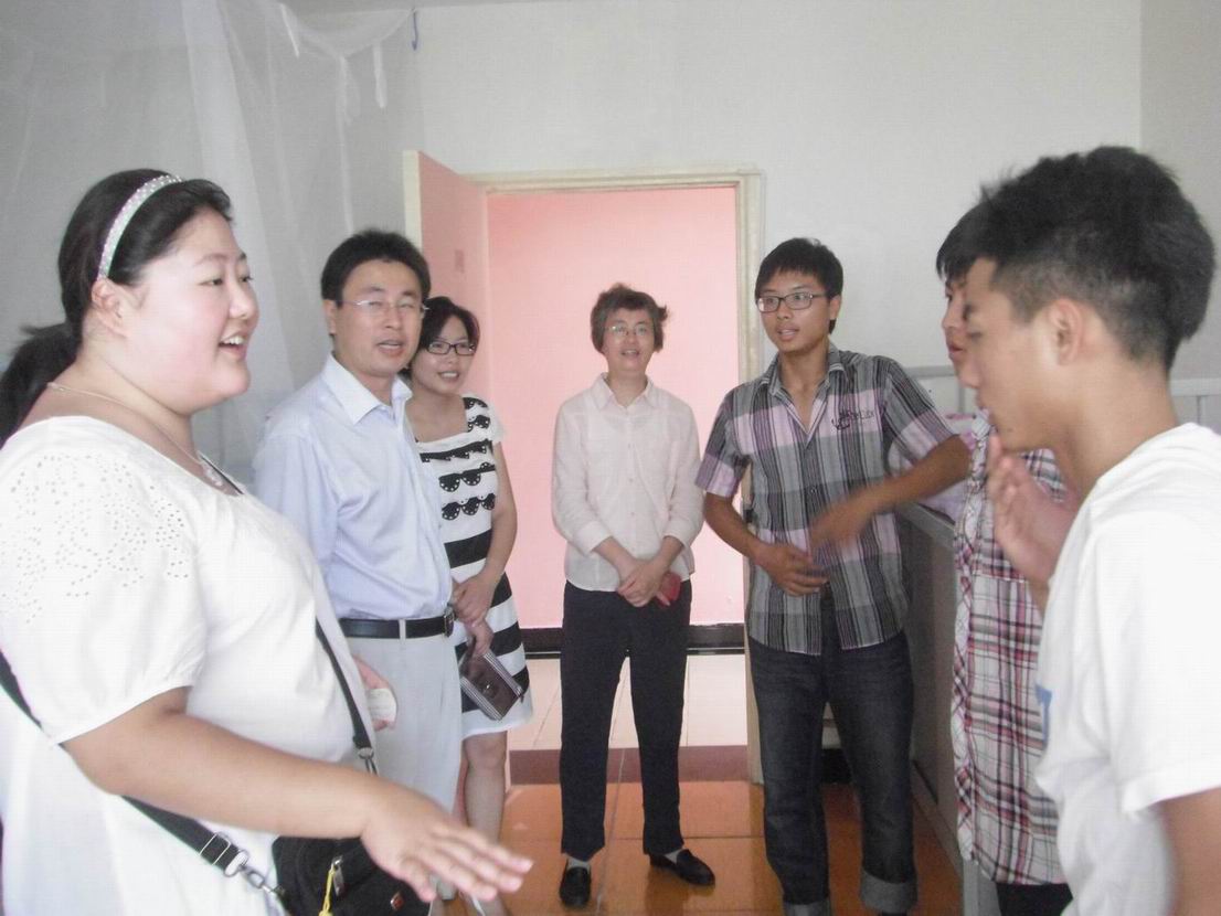 随后,陈力华副校长一行人又走访了新生寝室,特别是几名少数名族的学生,询问他们的适应情况,关心他们的生活环境。面对新入住学院的新同学,周洁老师还很和蔼地和他们谈起了自己学生时候的种种经历。