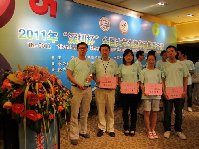 7月24日至29日,由基础学院副院长李路老师为教练、城市轨道交通学院马建立老师为领队、轨道学院的学生范柳斌、陈妮娜、胡昱一行五人,代表上海赴深圳参加2011年“深圳杯”全国大学生数学建模夏令营,经过激烈的角逐,上海工程技术大学代表队在众多高校的论文及答辩中脱颖而出,获得A题第一名的优异成绩,捧得了首届“深圳杯”,为学校争得了荣誉。