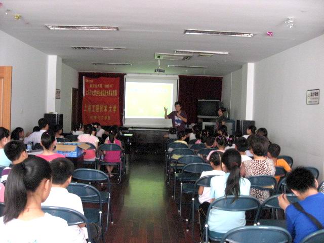 7月16日13:00,化学化工学院科学商店一行在分团委书记石海雄老师的带领下,来到松江区永丰街道玉乐小区居委开展了以“低碳生活,美好未来”为主题的暑期社会实践活动。玉乐居委青少年事务负责人董磊老师、小区内的中小学生及其家长参加了此次活动。