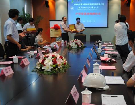 在愉快和谐的气氛中,上海工程技术大学副校长孙培雷和上海电气阿尔斯通总经理杨兴海先生共同启动了象征推进实质性启动的揭牌仪式。