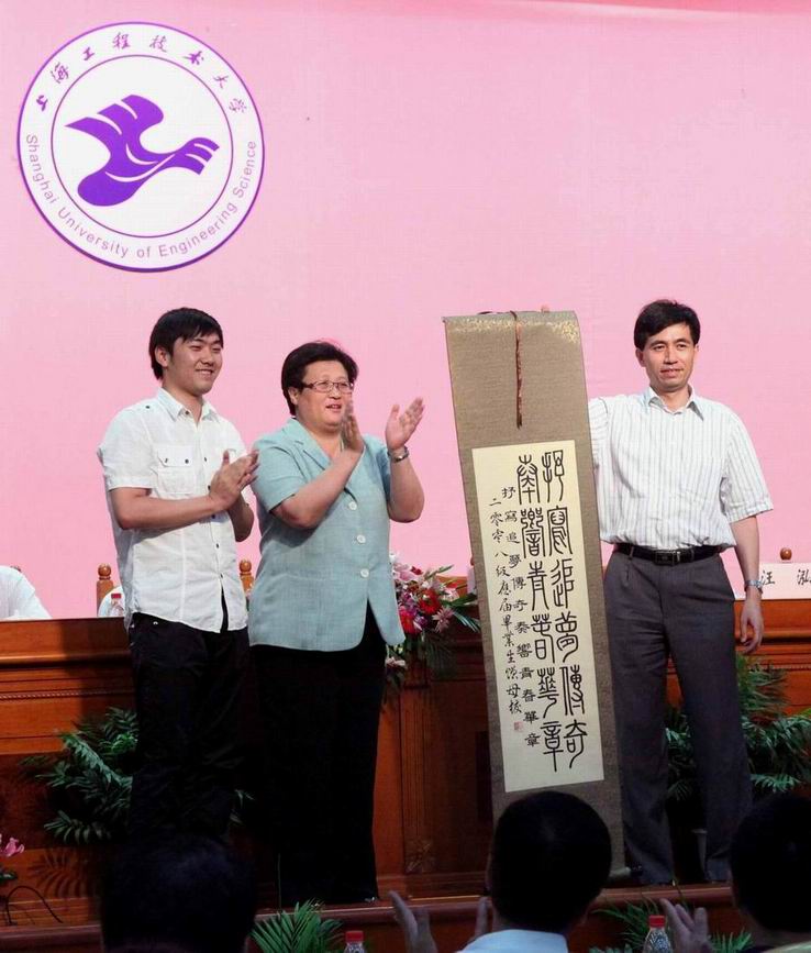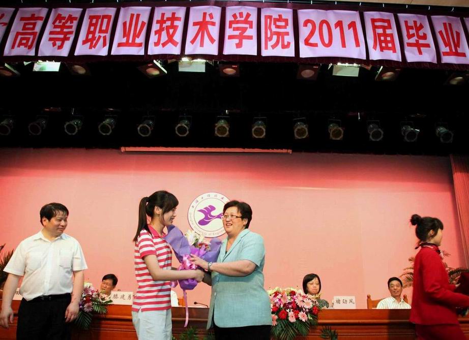 典礼在雄壮激昂的国歌声中拉开了帷幕,校党委书记滕建勇、党委副书记田信灿、副校长孙培雷分别宣读了获得“上海市普通高等学校优秀毕业生”“2011年全国职业院校技能竞赛”奖项、“2011年高职学院考取本科院校的毕业生”名单。校领导分别为获得上述荣誉的毕业生进行了颁奖。