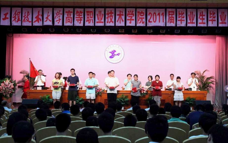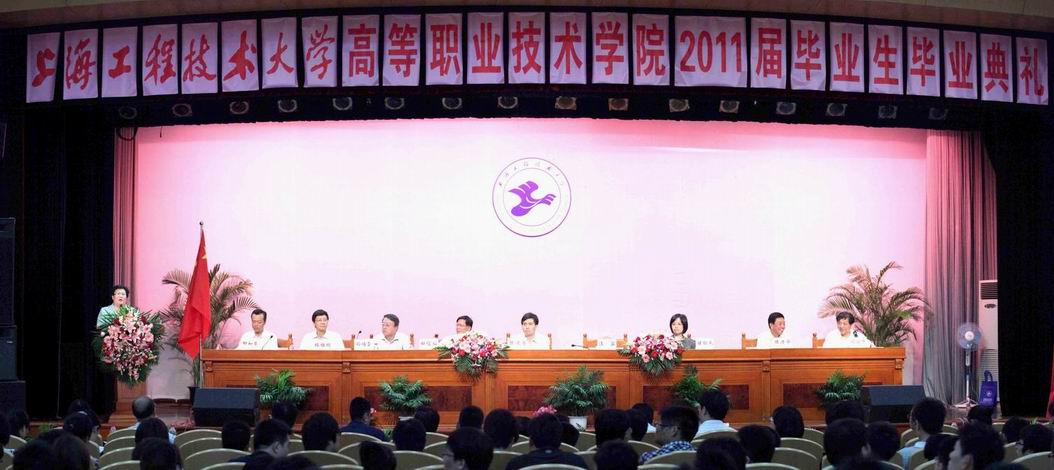 7月7日下午2点,上海工程技术大学高职学院2011届毕业生毕业典礼在逸仙校区师生活动中心涵憬堂隆重举行。校党委书记滕建勇,校长汪泓,党委副书记田信灿、褚劲风,副校长孙培雷、陈力华、程维明及校办、党办、学生处、财务处等领导出席了本次典礼。毕业典礼由高职学院院长刘启中主持。院党委书记柳如荣,党委副书记李军,副院长胡宁、田盈耕、许锦彪以及高职学院相关职能部门负责人、各系部负责人、辅导员、班主任老师和高职学院近500名毕业生齐聚一堂,共同见证了大学生涯中最值得纪念的时刻。