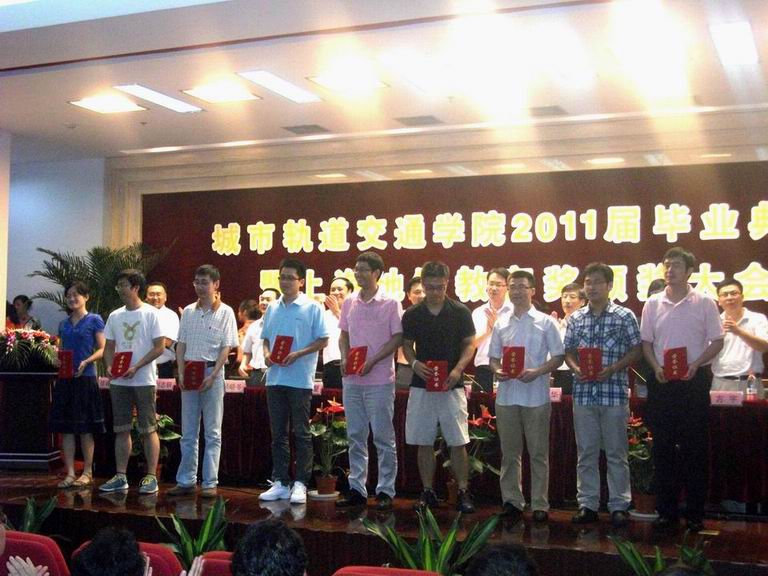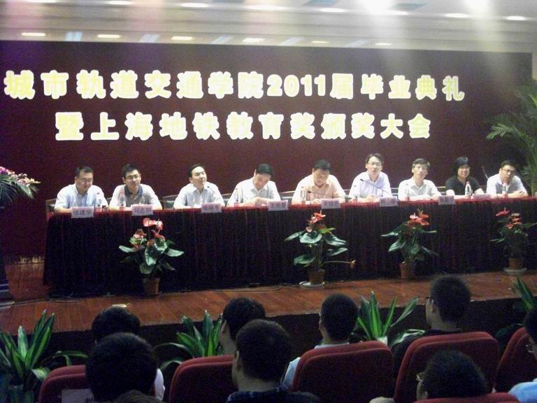 7月6日下午1点,城市轨道交通学院在图文信息中心第二报告厅隆重召开2011届毕业生毕业典礼暨上海地铁教育奖颁奖大会。校长办公室主任史健勇、上海申通地铁地铁集团有限公司人力资源部副部长韩骏、学生处处长王明复、教务处处长鲁嘉华、城市轨道交通学院院长柴晓冬、党总支书记缪行外、科研副院长刘志钢、教学副院长方宇、党总支副书记徐建华、全院教师和2011届全体毕业生出席本次会议。会议由城市轨道交通学院院长柴晓冬主持。