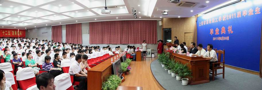 近日,上海市高级技工学校2011届学生毕业典礼在综合楼十一楼思进厅隆重举行。校长刘启中、校党委书记柳如荣、党委副书记李军、上海工程技术大学财务处副处长张志刚、副校长胡宁、田盈耕、许锦彪等领导出席典礼。参加本次典礼的还有学校各系部的老师和全体毕业生。典礼由许锦彪副校长主持。