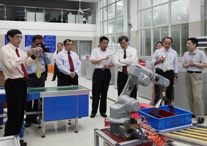 7月4日,新加坡工艺教育局东区学院院长刘怡中率领代表团一行8人莅临高职学院访问。高职学院院长刘启中,副院长胡宁、许锦彪等院领导迎接了到访贵宾并陪同客人参观了实训中心。