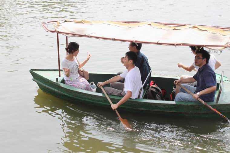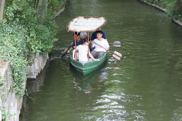 下午,暑期学校学员们首先来到美丽的松江方塔园参观。方塔园以北宋古文物和江南最秀丽的方塔为主体,塔影波光,山水本色,斗拱素栏,秀美誉冠。同学们身临诗情画意的美景,乘着小船,游弋在美丽的湖泊上,“让我们荡起双桨,小船儿要推开波浪……”的歌声不绝于耳,大家留连忘返,可谓不虚此行。
