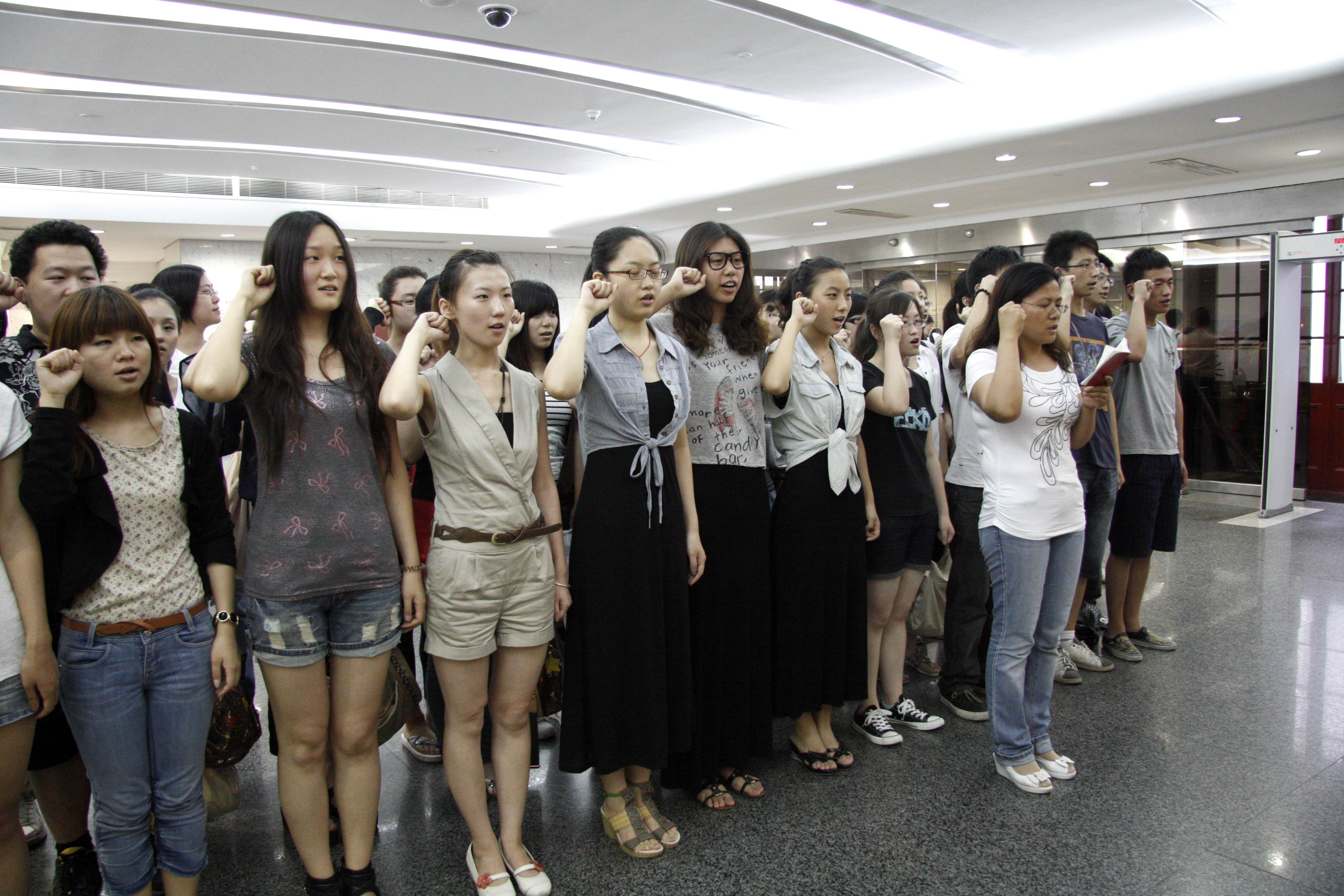“我志愿加入中国共产党,拥护党的纲领,遵守党的章程,履行党员义务,执行党的决定,严守党的纪律,保守党的秘密,对党忠诚,积极工作,为共产主义奋斗终身,随时准备为党和人民牺牲一切,永不叛党。” 一声声誓词不仅体现了大学生党员对党的热爱与忠诚,也表达了大学生党员努力使自己成为共产主义远大理想和中国特色社会主义共同理想的坚定信仰。宣誓仪式是庄严神圣的一课,是对预备党员进行入党教育的一个重要环节。在宣誓结束后仍能看见许多预备党员眼角含着泪水。