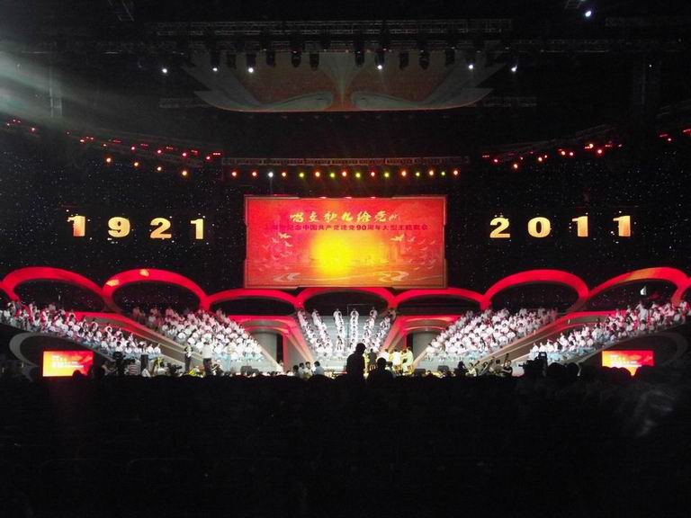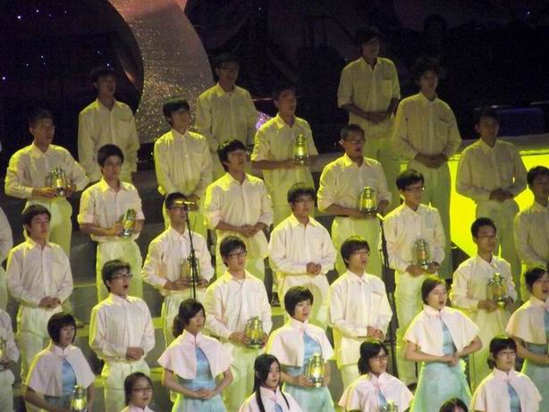 晚饭过后,全体演员进行了最后一场彩排。虽然辛苦了一天,但经过同学们的调整和不懈的努力,所有的困难都克服了,成功地完成了全场的彩排演出。晚上21:00,彩排结束了,虞蓉老师慰问同学并说明正式演出的要求后,同学们有序地离开世博演艺中心。大家同学们辛苦但满心地期待着,因为明天,即是他们展现自己爱国情怀、抒发爱国情感的好时机!