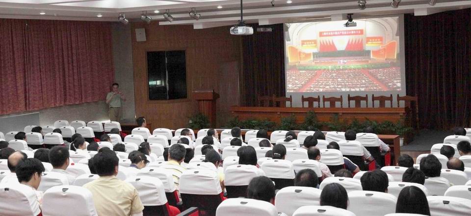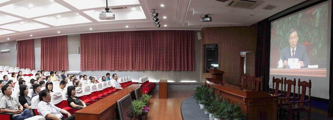 6月29日下午14点30分,高职学院组织教工党员在综合楼11楼思进厅观看了现场直播的《上海市庆祝中国共产党成立90周年大会》。学院党委书记柳如荣,院长刘启中,党委副书记李军,副院长许锦彪以及学院全体党员和入党积极分子通过电视现场直播观看了大会。