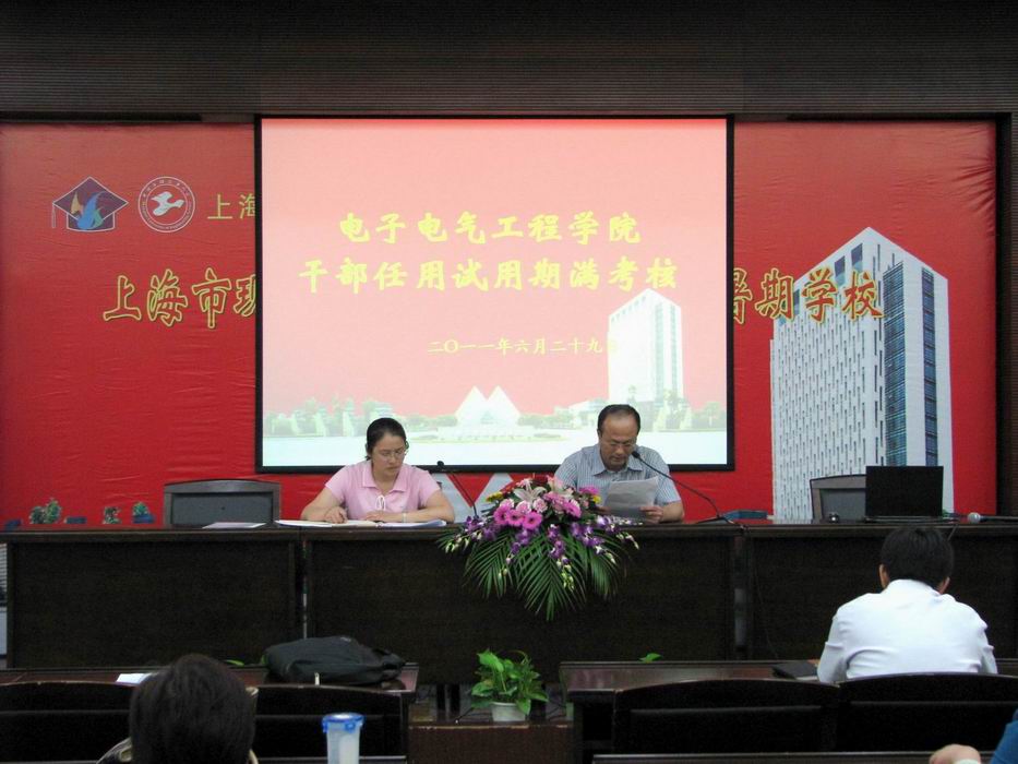 6月29日下午1:00,电子电气工程学院在第三报告厅会议室召开了干部任职试用期满考评会。校党委组织部部长张伟林老师副部长王勤老师,电子电子工程学院王裕明院长,院党委茅蕾书记,副院长张莉萍老师,党委副书记王东阳老师,副院长余朝纲老师、副院长史志才老师,以及各系(室)负责人和支部书记等参加了考评会。会议由电子电气工程学院党委书记茅蕾老师主持。