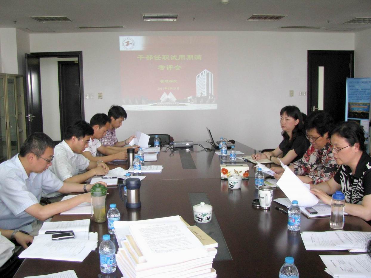6月28日下午1:30,管理学院在行政楼612会议室召开了干部任职试用期满考评会。校长兼管理学院院长汪泓教授,校党委组织部副部长王勤老师,管理学院党政领导,党委委员,各系(室)负责人和支部书记、工会小组长等三十多人参加了考评会。会议由管理学院党委书记吴清老师主持。