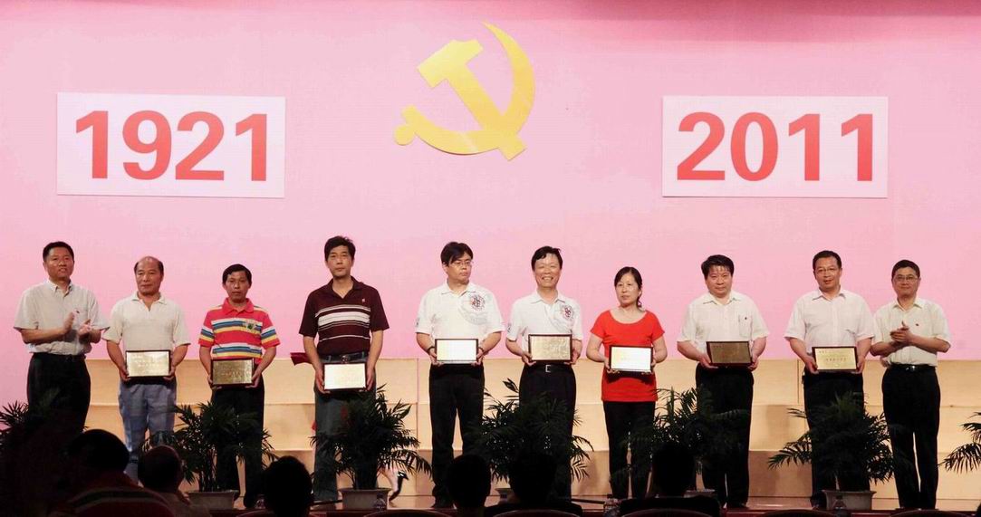 下午2时,伴随着庄严的国歌声,高职学院建党90周年庆祝大会正式开始,大会分为院领导致辞、表彰先进和宣誓仪式三个环节。首先,院党委书记柳如荣代表学院党政领导为本次大会致辞。他回顾了我党90年来的艰辛历程,号召大家以各项工作的优异成绩纪念中国共产党建党九十周年,并预祝大会圆满成功。随后,院长刘启中宣读了高职学院《关于表彰优秀共产党员、优秀党务工作者、“创先争优”先进党支部的决定》,并号召全院共产党员向他们学习,立足本职,勤奋工作,务实进取,创造业绩。院领导分别为获得这三个奖项的个人和团体颁发奖牌。随后,学院新党员上台面对党旗举行了庄严的宣誓仪式,台下全体党员与新党员一起,重温了这一宣誓过程。
