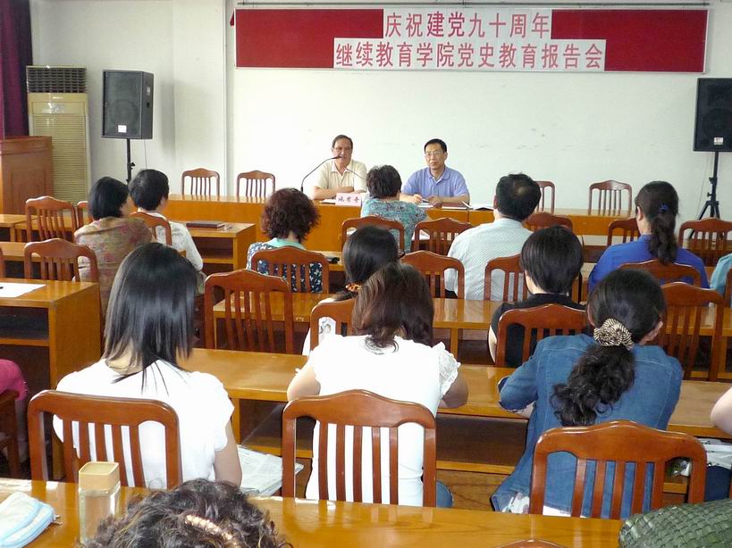 在伟大的中国共产党建党90周年即将到来之际,为帮助广大党员干部加深对党的认识,坚定共产主义理想和中国特色社会主义信念,在校组织部的大力支持下,继续教育学院党总支于6月28日邀请我校离休老干部施有奇为学院全体教职员工作了专题党史教育报告,报告会由学院党总支书记、院长姚黎明主持。