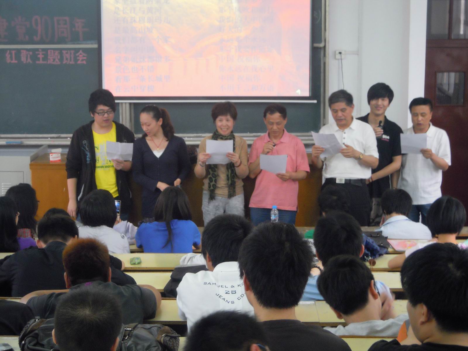 以班级为单位,以唱“红歌”、诗歌朗诵为主要形式的主题欢庆活动,由10级物流专业班在6月10日下午率先唱响“红歌”拉开了帷幕,各专业班在6月中旬不同时间也分别举行了“红歌”主题欢庆活动,有的班级还穿插了感悟演讲和党的历史知识竞答等。形式多样的欢庆活动吸引了学生的积极参与,有11个班级近400名学生和全体班主任、学工办老师参加,其中有师生的独唱、俩人唱、小组唱和大合唱,还有个人及双人诗朗诵等等。
