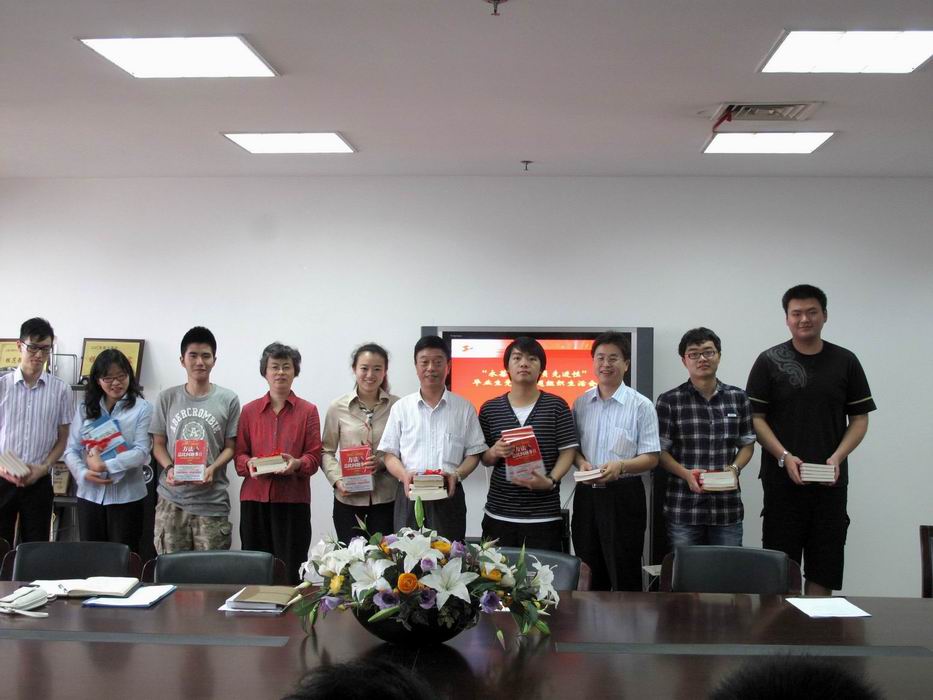 最后,活动举行了“一本书、一句话、一片情”毕业生党员赠书仪式,毕业生党员同学每人向学院党总支捐赠了一本书,学院党总支也精心挑选了《方法总比问题多》回赠给毕业生党员们,期待他们在岗位上“创先争优”。