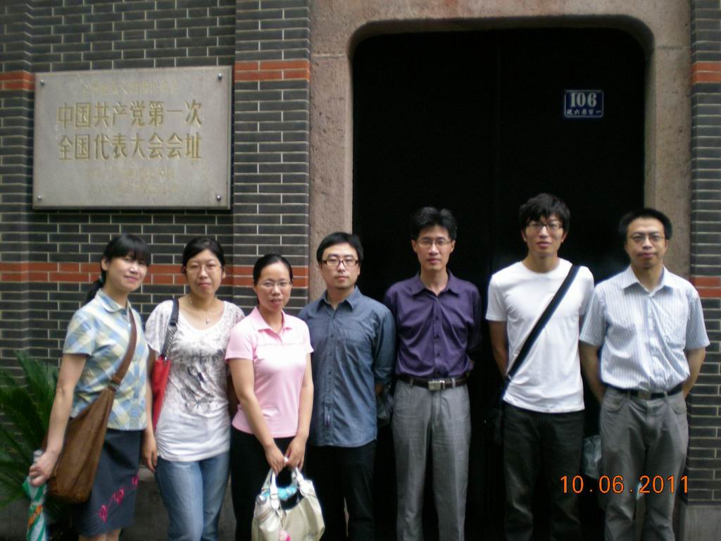 中共“一大”会址位于市中心新天地附近的兴业路上。1921年7月23日来自全国各地的13位代表在此召开中国共产党第一次全国代表大会,正式宣告中国共产党的诞生。党员们认真地参观了“一大”会址纪念馆中的中共创建史陈列室和“一大”会议室。在中共创建史料陈列室通过170余件历史文献、文物和照片,展示了中国共产党成立的历史背景、各地共产主义小组的产生及其活动、中国共产党的诞生等内容。展览现场根据当年的会议原景复制的代表们的蜡像,栩栩如生的,形象地展示了当年的历史场景。一大代表的照片生平介绍也完整地呈现在大家面前,尽管其中有的人走过弯路、有的人脱离了革命队伍,甚至成为汉奸。历史是公正的,这无损于党的光辉形象。