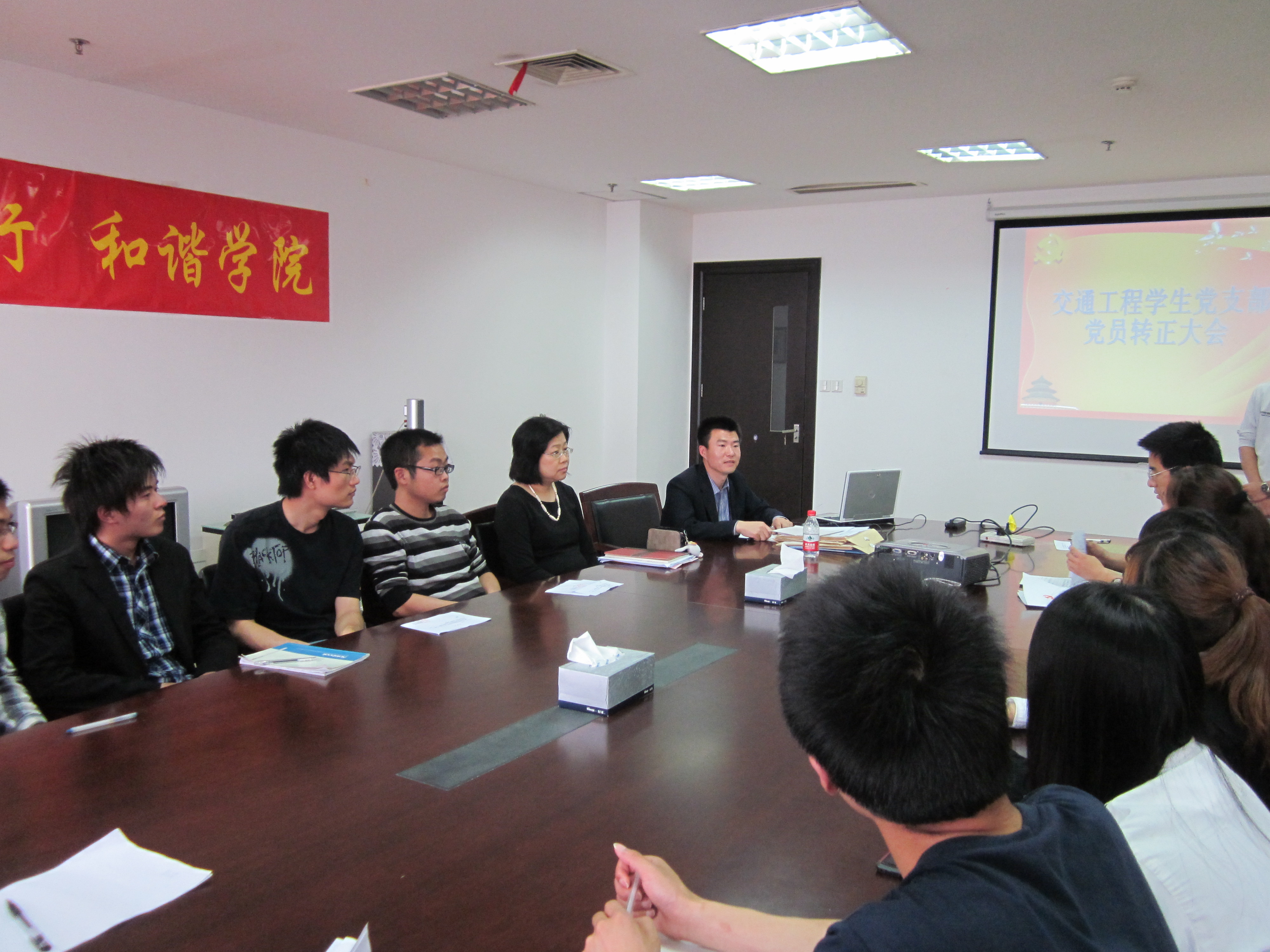 4月26日下午4:30,城市轨道交通学院交通工程学生党支部在行政楼11楼会议室召开党支部大会,出席会议的领导有学院党总支书记缪行外老师,学生党支部书记刘景军主持会议。会议应到党员17人,实到17人。