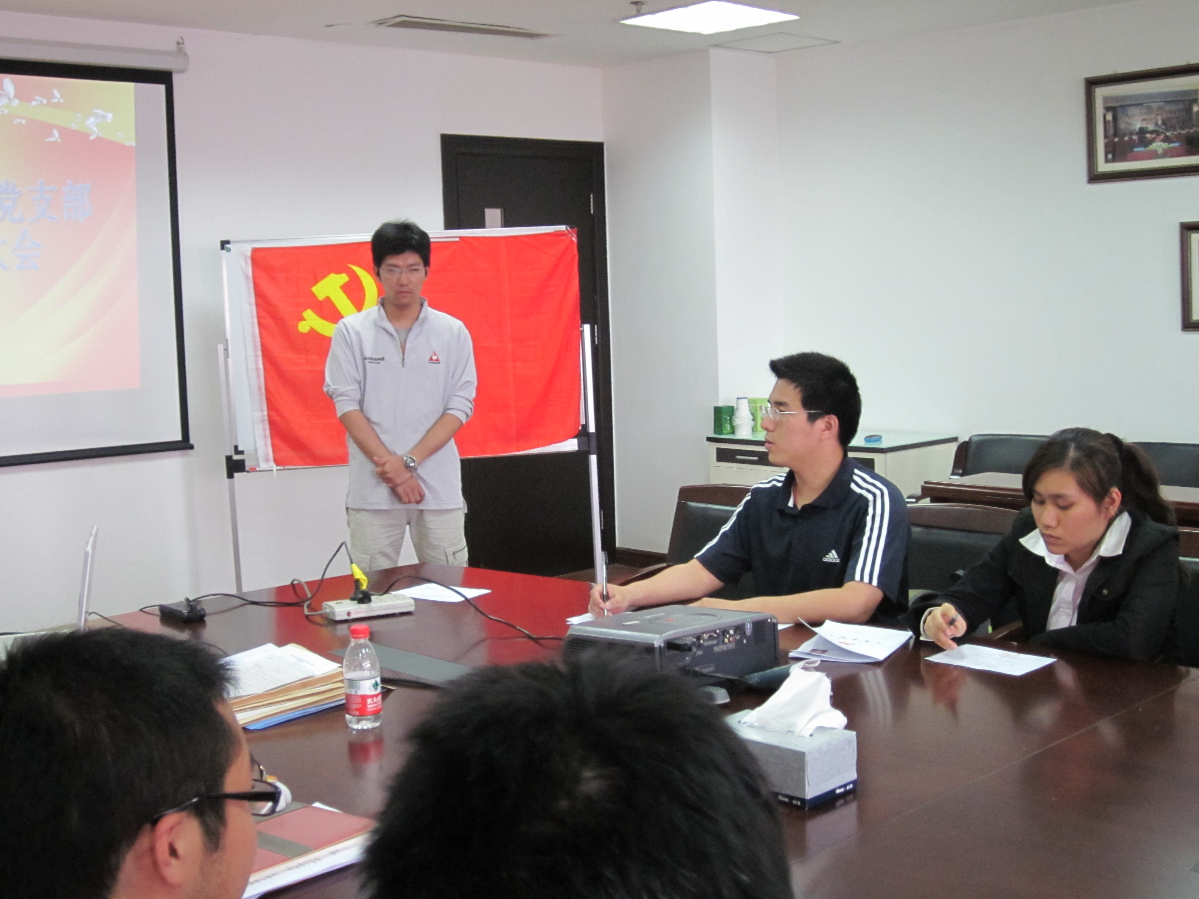 会议主要有三项议程:一、宣读党委组织部批准姚建伟等6位同志为预备党员的通知书;二、支部大会审议并通过沈晨琦等3位预备党员的转正申请;三、传达本支部近期的主要事务及活动安排。