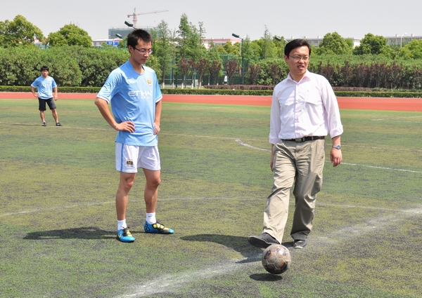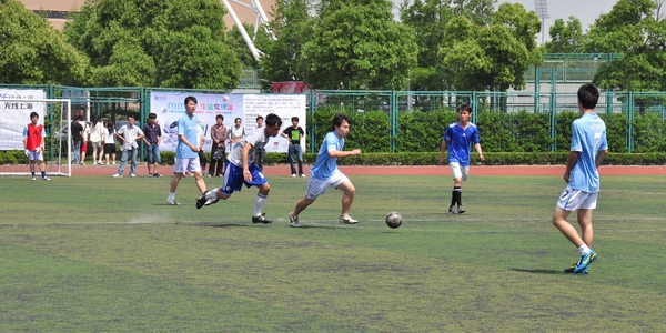 足球之巅,绿茵飞扬,决战工程大。5月13日下午13:00,由校体育运动委员会、体育教学部主办、艺术设计学院承办的2011年上海工程技术大学阳光大联赛“动感地带”杯男子七人制足球比赛在西足球场正式拉开帷幕。