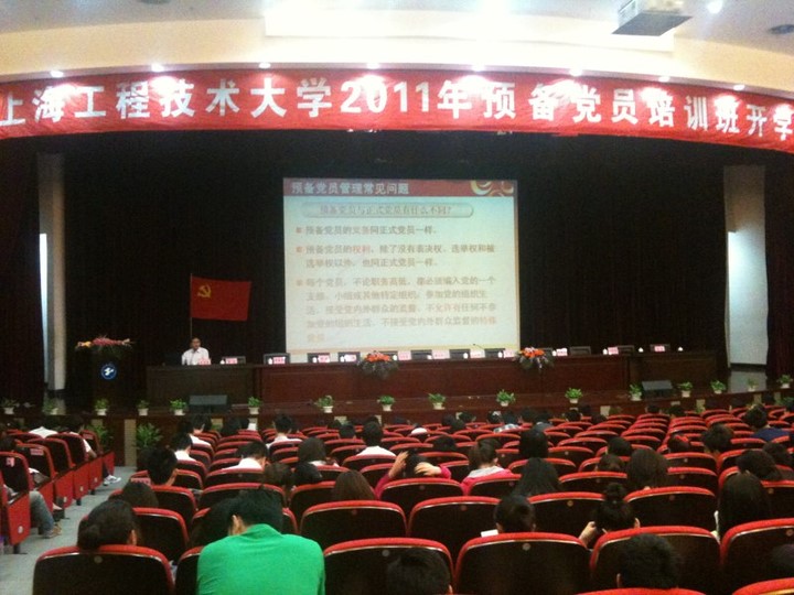 5月13日,服装学院预备党员在志宏堂参加了上海工程技术大学2011年预备党员培训班开学典礼。积极参加党组织培训、始终学习先进知识,是服装学院学生党支部对预备党员的要求,本次培训班更是党支部对预备党员考察教育的重要一环。