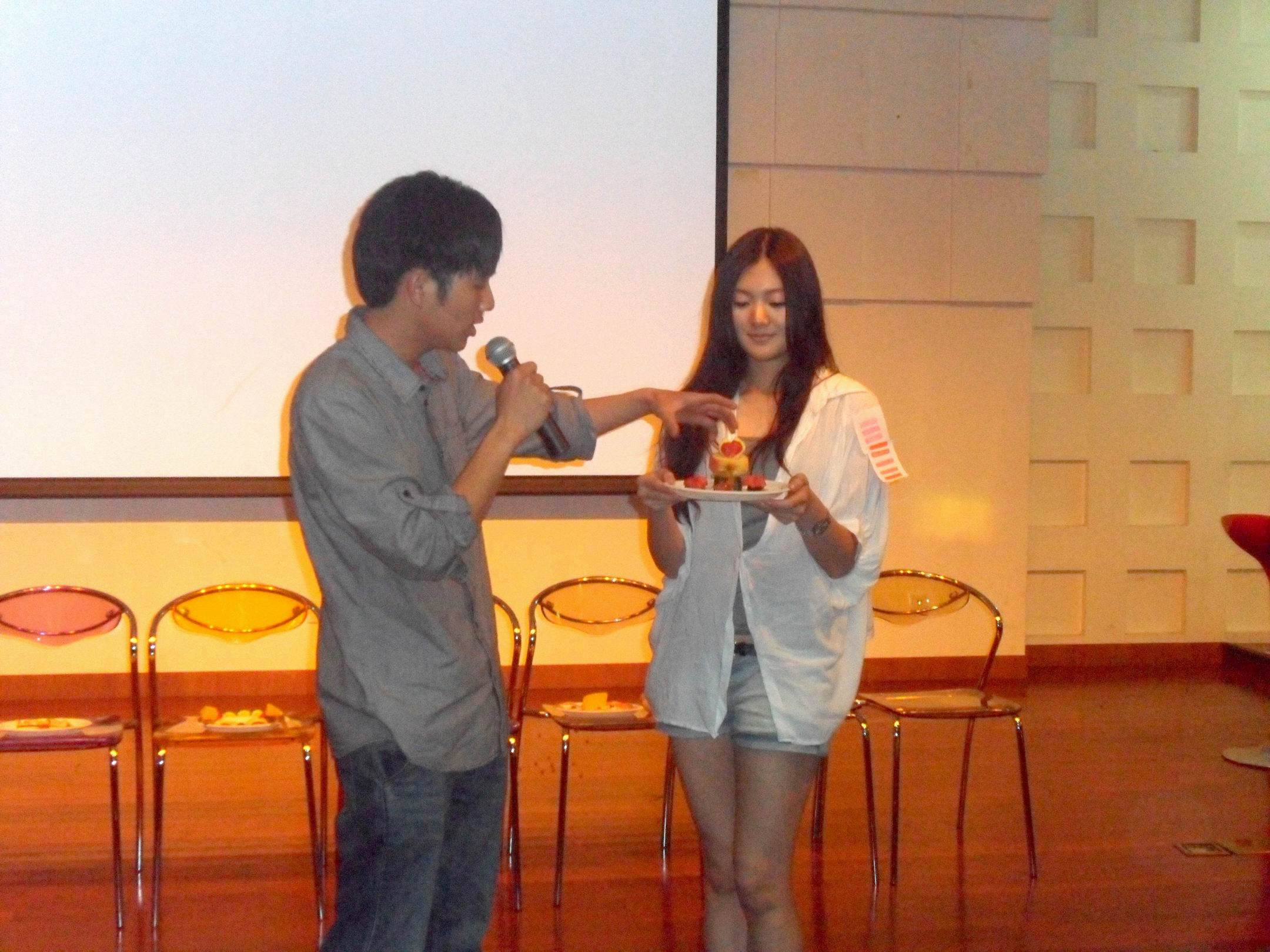 晚会在精彩绝伦的一场街舞秀之后拉开了帷幕。随后便进入了社团成果展示的环节。意气风发、刚柔并济的跆拳道表演、整齐划一、亮丽无比的踢踏舞表演还有恬静淡雅、古色古香的茶艺表演给航院学子们带来了视觉、听觉、嗅觉上的盛宴。随后,一出夸张的小品在博得了阵阵欢笑的同时也让同学们从中得到启发。晚会的第三个环节是水果拼盘制作比赛,即以航空运输学院社团部各部门为单位用所提供的水果制作出一个水果拼盘,寄托自己对于母亲的无限情怀。在部门成员的通力合作下,一盘盘各具特色、风格迥异的水果拼盘应运而生。各部门的代表上台介绍其制作的水果拼盘的寓意,最后由分团委书记林小希老师、副书记周凯同学以及学生会主席高越同学一起评选出最佳拼盘。最后外联部摘得此次拼盘比赛的桂冠。