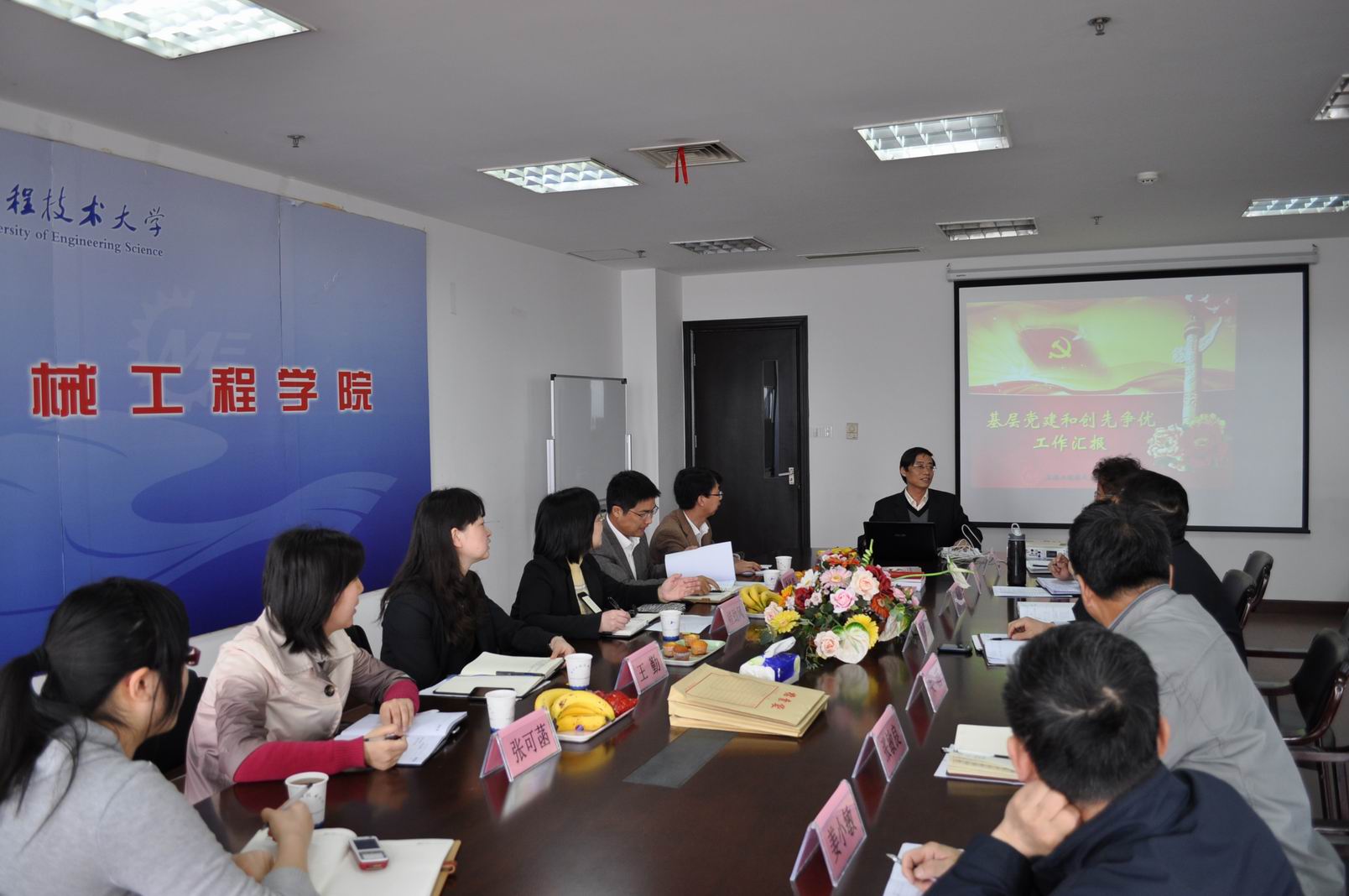 首先,学院党总支书记刘牧众就学院党组织设置、发展党员的做法、学习型党支部建设的成果、二级党校制度以及教工支部的建设这五个方面进行了介绍。其中,对入党积极分子采用的系统培养制,对预备党员的给平台、提要求、重实效,编制的大学生党员评估手册、二级党校的一系列制度,教工与学生支部结对共建等创新型的工作体现了机械工程学院党建工作的细致规范。