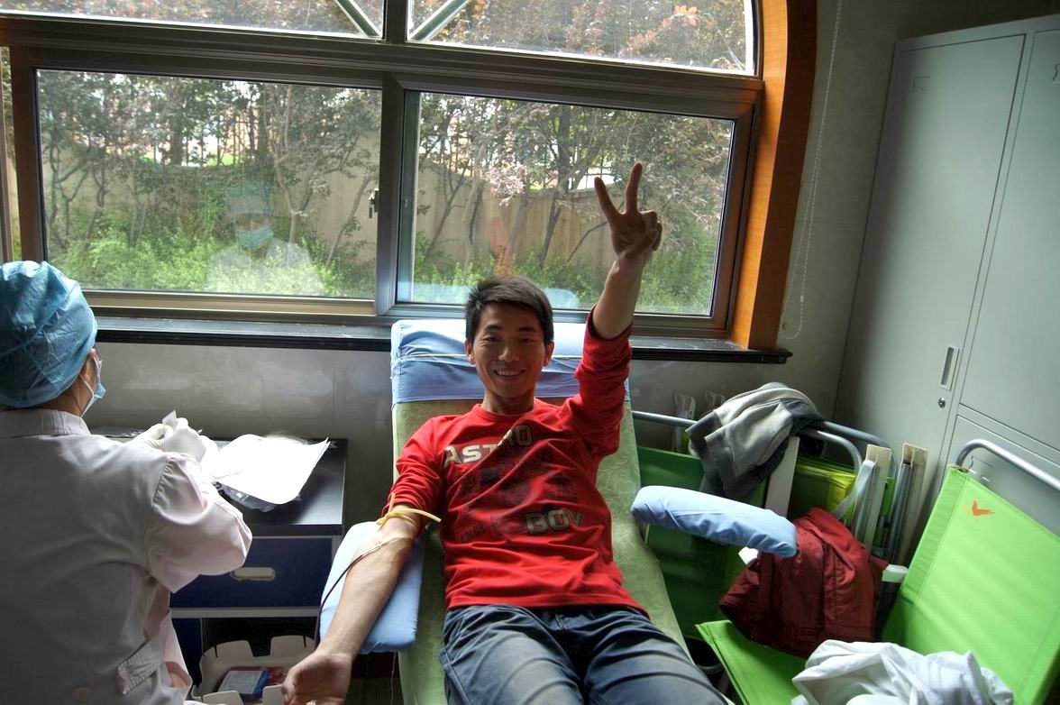 在长长的献血队伍中,同学们相互鼓劲,女生们更是表现出了极大的勇气,微笑感染了在场的每一个人。同学们纷纷捋起袖子衣袖,慷慨奉献出自己的爱心,用实际行动展现了大学生为社会奉献的热情,谱写了一首首生命的赞歌。在献血现场活跃着许多志愿者的身影,一句真切的关怀,一杯热腾腾的牛奶,拉近了彼此之间的距离;学院辅导员老师们来回奔波,关注每一名献血同学的身体状况,送上一句问候,递上一杯水。