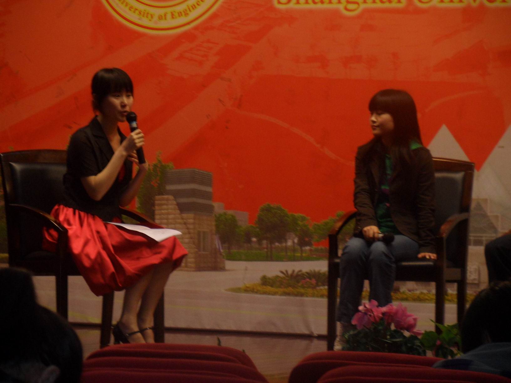 一开场,主持人分别介绍了四位同学的经历,引来场下一片赞叹之声,同学们向他们投以羡慕的目光,访谈交流会在这样良好的氛围中展开了。四位同学分别与大家分享了自己的大学生活、职业生涯规划,并就一些问题展开讨论,鼓励在场的同学合理规划大学生活,注重学习效率与自身综合素质的发展,并尽早确立职业方向,为今后做好准备。访谈过程中,嘉宾与观众互动热烈,同学们纷纷提出自己对大学生活的困惑与生涯规划的迷茫,嘉宾均从自身的经历出发热情地进行了解答,现场气氛几度达到高潮。