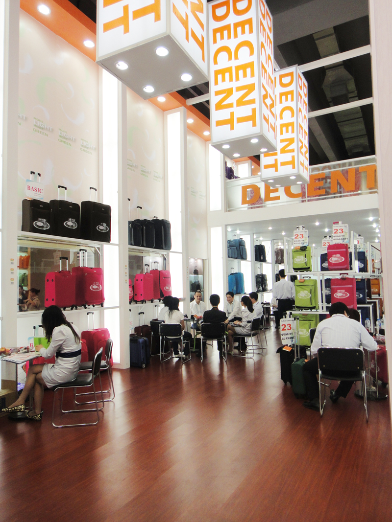 我校艺术设计学院吴亚生副教授主持设计的广交会DECENT特装摊位,在广交会上获得好评,这是艺术设计学院与上海顶新箱包有限公司校企合作的第一个项目,也是上海顶新箱包有限公司的DECENT品牌广交会上第一次独立亮相。上海顶新箱包有限公司是一家集箱包生产、研发、销售和服务为一体的国际大型企业,公司在中国轻工工艺品进出口商会箱包分会理事中担任副会长单位,同时担任上海市工商业联合会箱包皮具行业商会副会长。目前,公司年出口额达到2256万美元,年产箱包220万只。公司拥有3个品牌DECENT、TRAVEL SETTER和YOURWAY,而DECENT无可比拟的持久性、可靠性、功能性和创新性已经使DECENT品牌成为中国同类产品的佼佼者。
