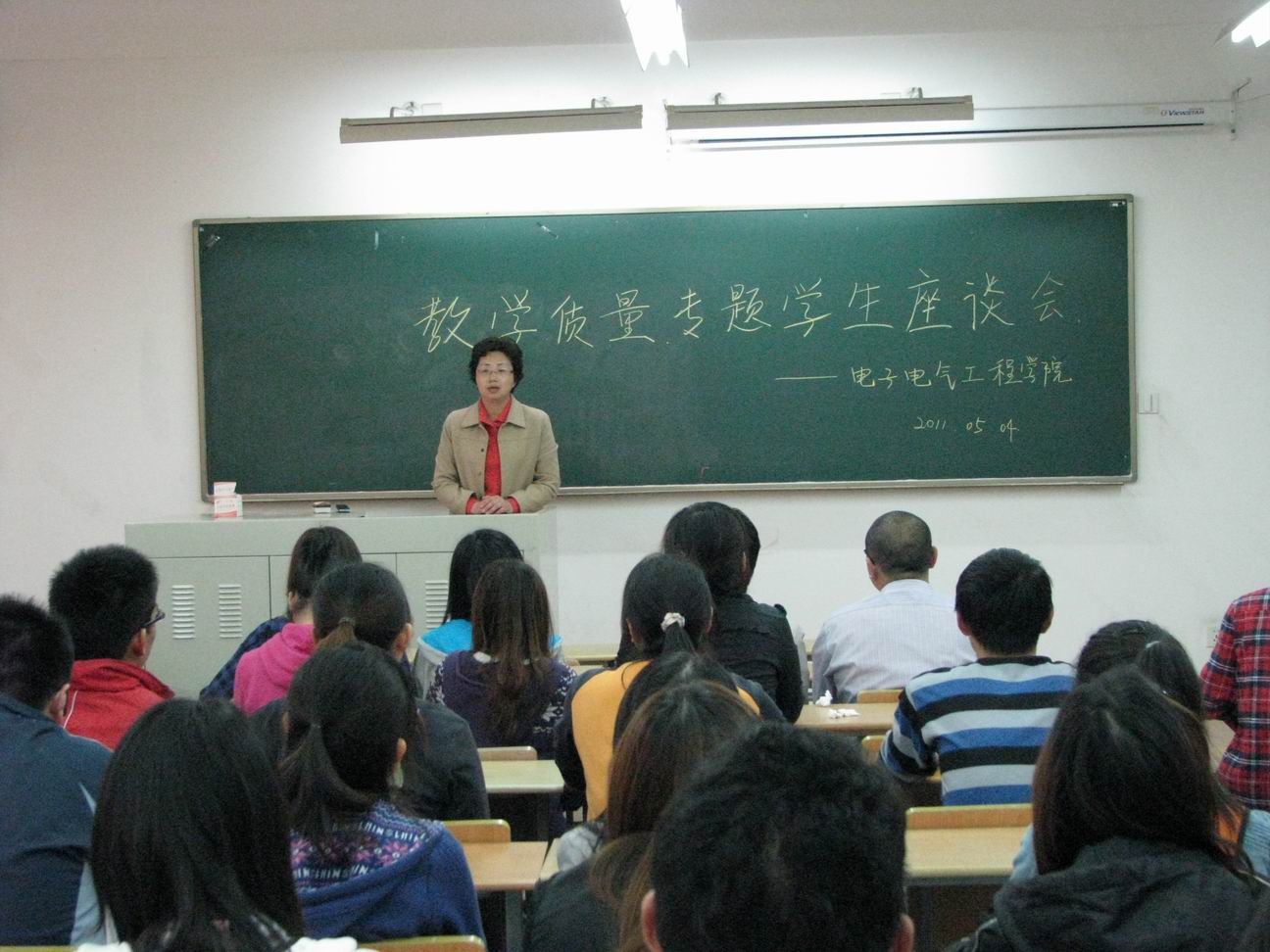 5月4日下午4:30,电子电气工程学院在教学楼B110召开了教学质量专题学生座谈会。会议由学院副院长张莉萍主持,教务处陆凤鸣老师也参加了本次会议。