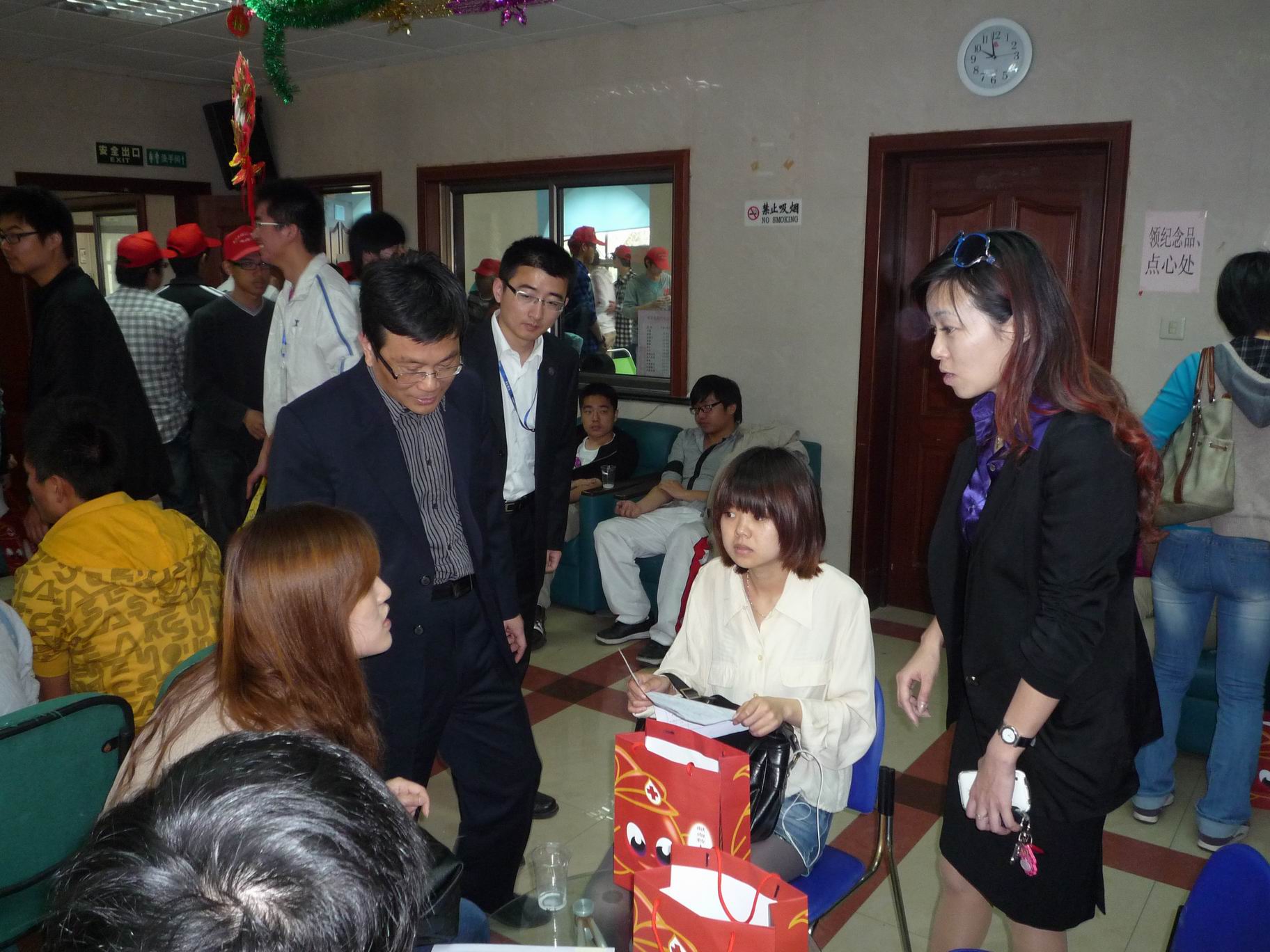 带着无私奉献的承诺和一份对于社会的回馈和感恩,4月29日上午服装学院一百多名学生来到松江血站进行了无偿献血。汪泓校长亲自前往血站慰问献血学生。学生处处长王明复、校办主任史建勇、服装学院院长胡守忠、党总支书记袁蓉、副书记李扬等领导一同到现场指导工作并慰问无偿献血的同学。