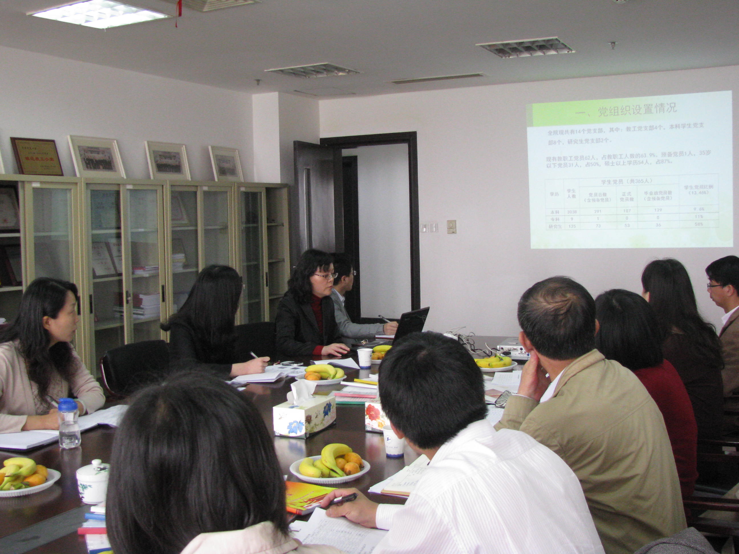 管理学院党委虞蓉副书记就学生党建工作进行了汇报说明,她就管理学院党委换届选举后学生党支部的设置依据和设置情况,党员发展中关于吸收宿舍管理员意见的新举措,党员发展的联系人制度等具体做法进行了具体的介绍。