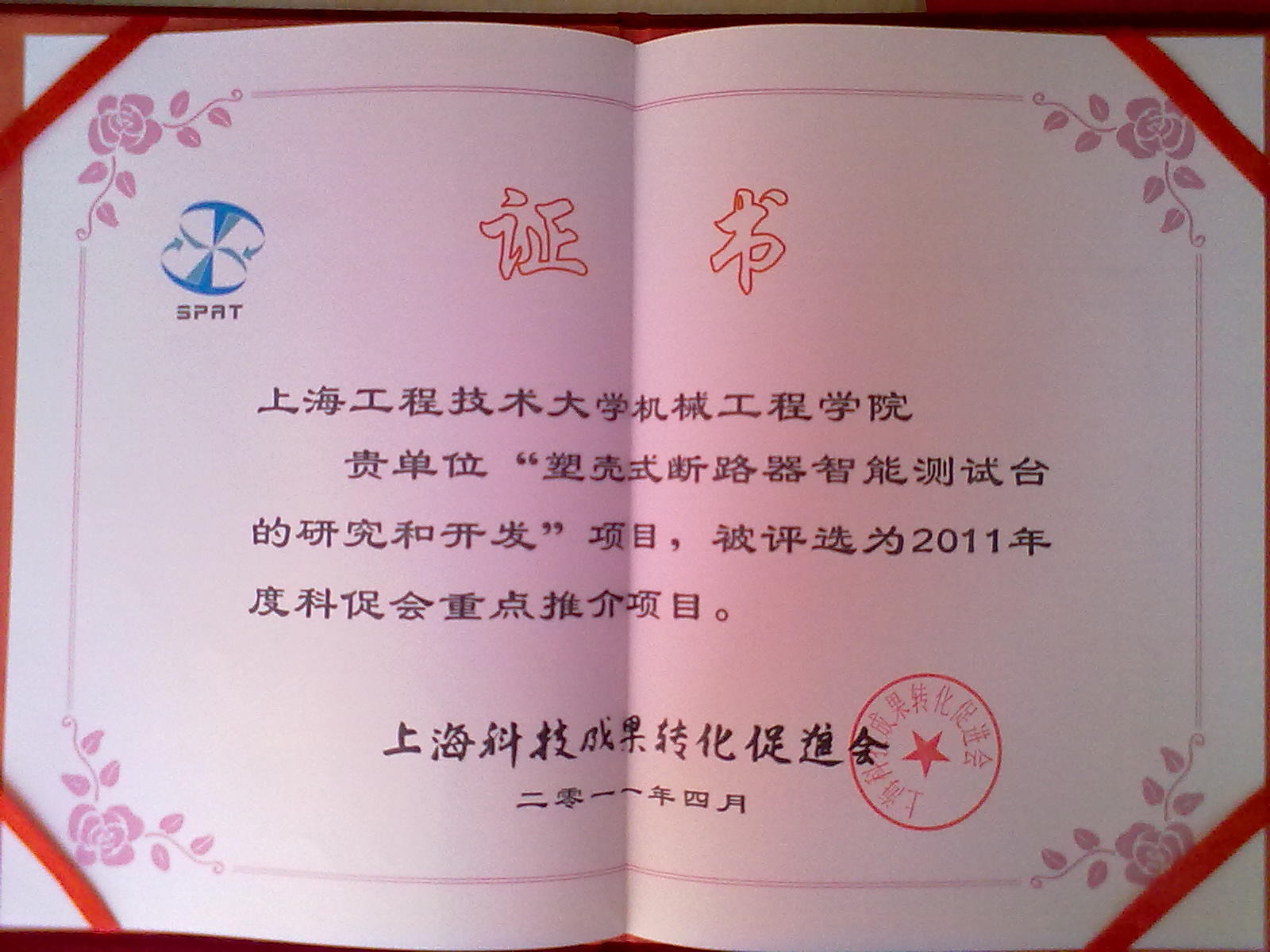 科促会重点推介项目是从历年来科促会资助的联盟计划项目中选拔出来的。评选以项目产生的经济效益与社会效益,产业是否符合国家发展导向,是否有广泛的市场前景作为主要标准。本着公平、公正、公开的原则,经过初审、预答辩、专家组审核、公示等程序,最终确定下来。我校机械工程学院主持的“塑壳式断路器智能测试台的研究和开发”项目于2007年应用于上海人民电器厂,取得良好的经济效益和社会效益,技术水平达到国际先进。该项目最终脱颖而出,成为8个重点推介项目之一,受到专家们的一致好评。